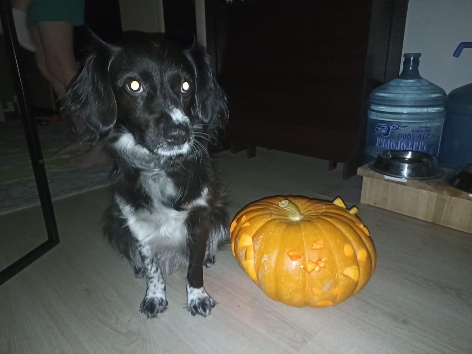 Наконец-то Макс порезал тыкву, раньше не до того было. В этом году лиц на одну тыквину получилось больше обычного. Без Жули никак. Ради пущей жути она включила свои фонарики. ![]() Показать полностью