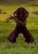 В качестве оружия использует огромное двуострое копьё. Пьёт человеческую кровь. Не вампир. Пытался изнасиловать Кагеро. Был убит Дзюбэем.