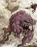 Дракон, похожий на слизняка. Он очень плохо видит и поэтому пожирает всё перед собой. Но почти полная слепота компенсируется великолепным слухом. Плохое зрение — его слабое место. Если удастся заткнуть ему уши, он станет совершенно безвредным.
