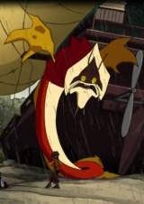 Хохочущий дракон-трансформер. Огнедышащий и полуразумный. Собирается воедино из сотни тысяч маленьких красных летучих мышей, поэтому убить его в принципе невозможно.