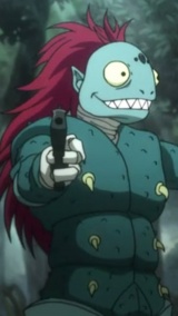 Лягушкообразный прямоходящий Муравей-химера с малиновой гривой волос и прочнейшим игольчатым панцирем. Истеричный садист.