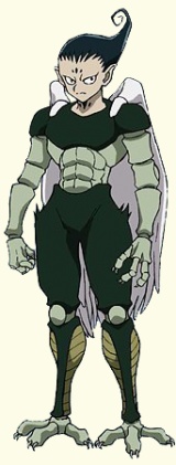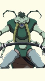 Прямоходящий гуманоидный богомол с раскосыми глазами и длинными зелёными волосами. Был рождён одним из первых ещё до изучения Муравьями Нэн.